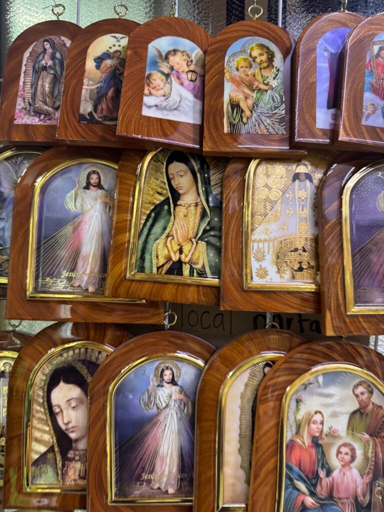 Es una ciudad donde un turista puede entrar buscando un simple recuerdo y terminar descubriendo toda una tradición comercial construida alrededor de la fe.